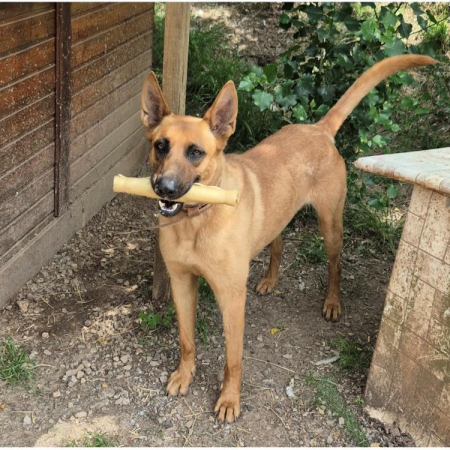 Aston est un mâle croisé Malinois / Chien loup tchèque né en Juin 2021 et actuellement en pension canine. Il pèse 36 kg et mesure 70 cm au garrot. Il est en bonne santé.