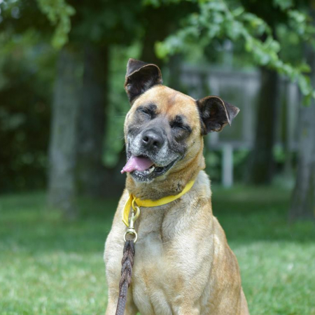 Bibop est une louloute timide, stressée par la nouveauté, mais lorsqu'elle est en confiance, c'est une chienne pétillante, pleine de malice et de joie de vivre !