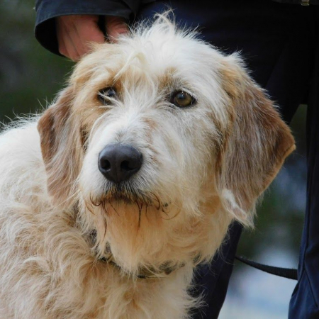C'est un chien assez exubérant et bavard. Il est proche des humains mais surtout de ses congénères. Il devra être placé avec un autre chien minimum.