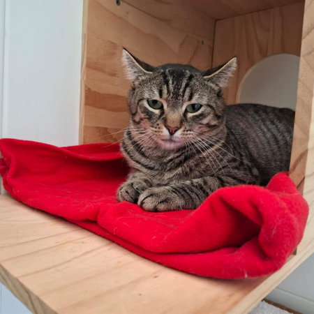 Pongo est un minou timide qui recherche des adoptants doux et patients qui lui laisseront le temps d'évoluer à son rythme.