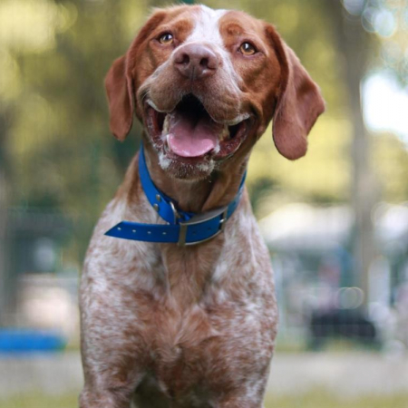 Skyjo est un chien gentil, qui aime communiquer et qui est plein d'énergie, il aime beaucoup jouer ainsi que le contact humain. C'est un chien plein de vie qui aura besoin de se dépenser. Il lui faudra une éducation positive pour apprendre à se canaliser. on évitera les placements avec enfants, il a tendance a nous sauter dessus énergiquement.